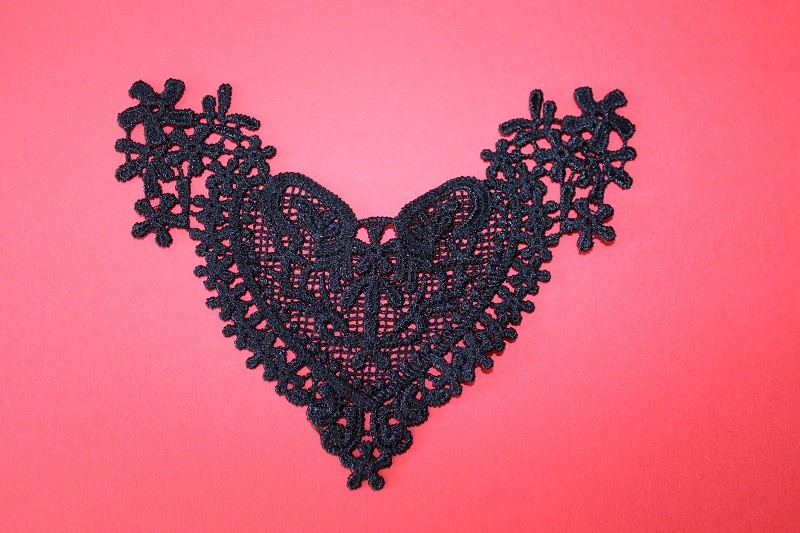 Aplicación bordada de color negro con forma de corazón.Su tamaño es de 10 x 12 cms aprox.
