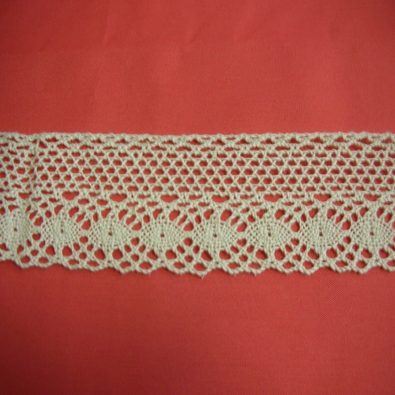 Encaje de bolillo mediano de unos 6 cms ideal para vestidos, paños tapetes volantes flamenca. Disponible en beig.