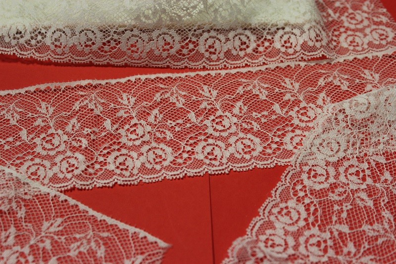 Encaje de nylon con motivo de flores, de unos 7 cms de ancho aprox.