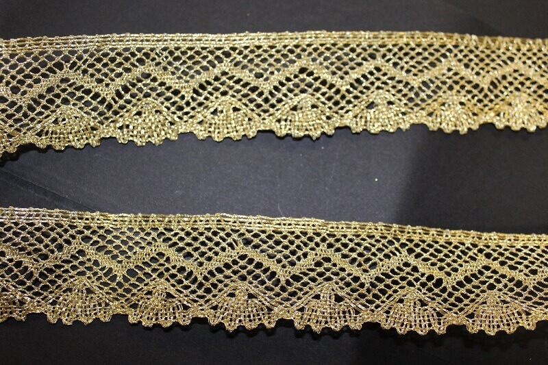 Encaje metalizado hilo oro de unos 4 cms aprox. Muy usado para manualidades asociadas al arte sacro, manton, sayas, puños vestidos virgenes, etc.