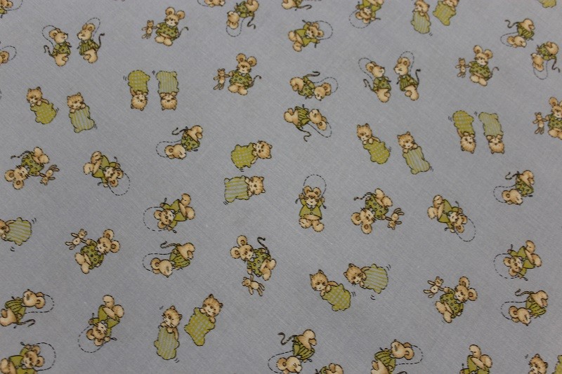 Tela batista de algodón infantíl con dibujo de conejos y gatitos. Ideal para confección, peleles, pichis, mantelería, estores, colchas, delantales, etc.