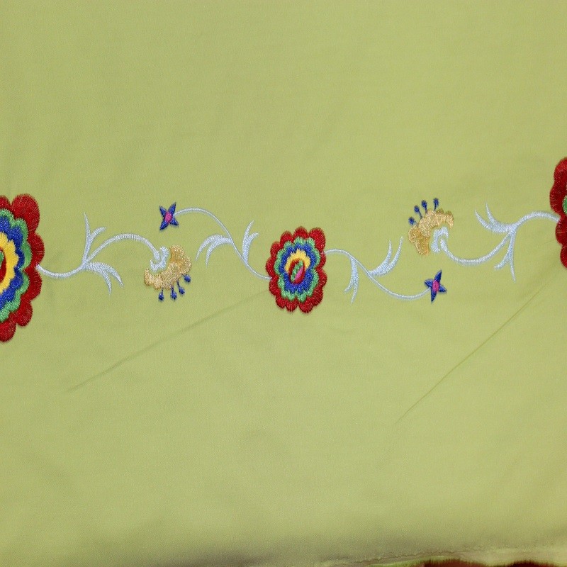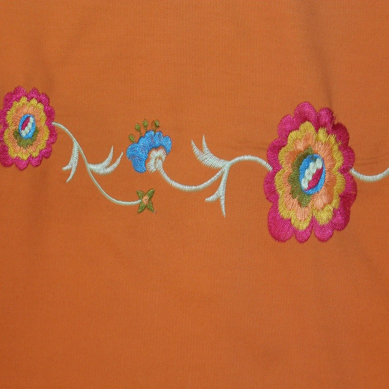 Tejido popelin liso con cenefa bordada en relieve. Ancho 150 cm.