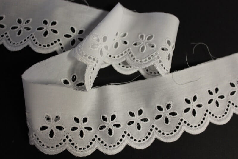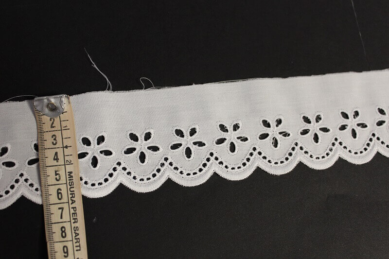 Tira bordada flor grande y blonda, de unos 6 cms aprox. ideal para volantes, mangas, vestidos flamenca, infantil, adornar blusas, etc. La pieza contiene 13.80 mtrs.
